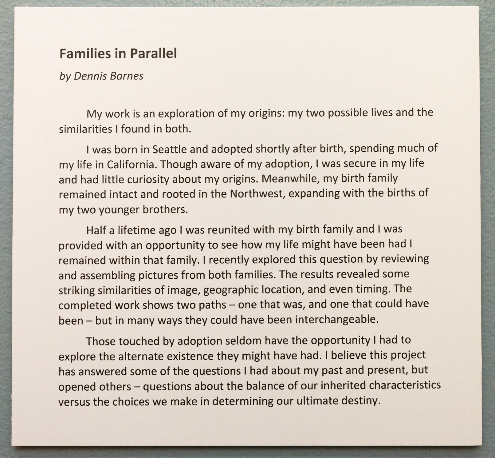 Artist statement by Dennis Barnes