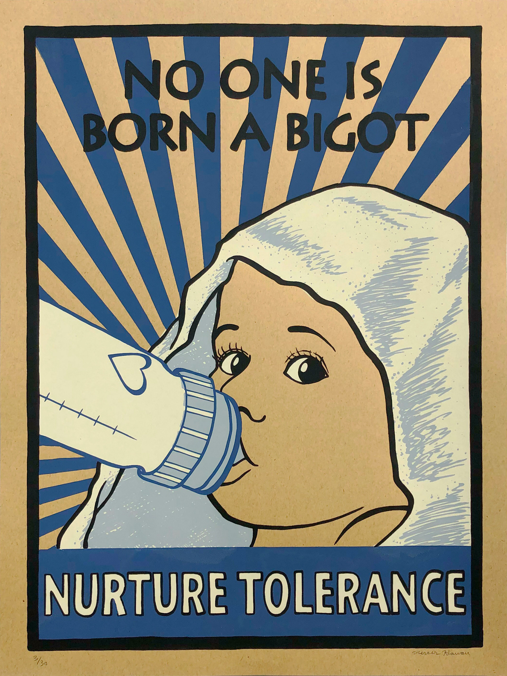 Traditional screen printing and contemporary digital printing methods both lend their unique qualities of quick and easy reproducibility to the dissemination of political and culturally critical messages. I blend techniques, often designing a poster digitally before printing an edition by hand. I gravitate toward themes of questioning gender norms and fostering hope for the future, even in the midst of a grim present.